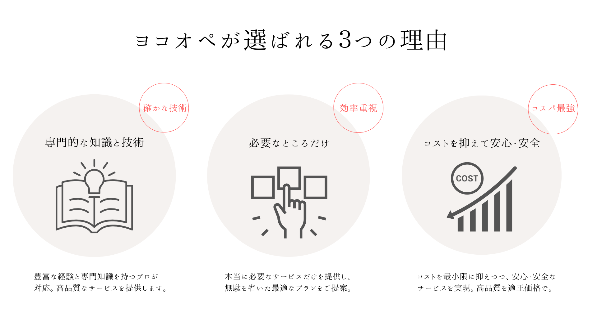 ヨコオペ株式会社は“安全品質効率”のバランスを徹底し、安心してお任せいただける施工体制を築いています。