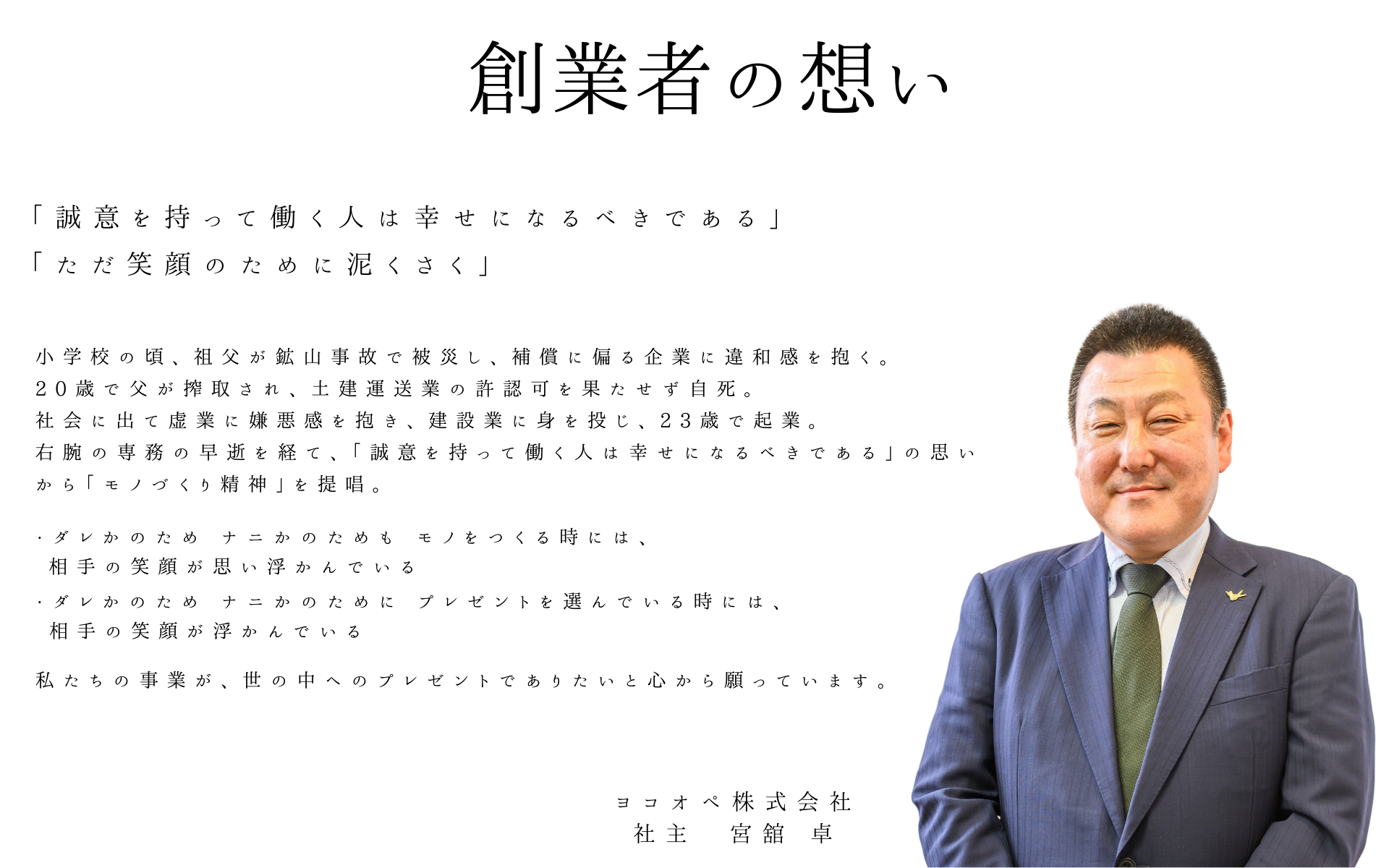 「誠意を持って働く人が報われる社会」を目指し、モノづくりを通じて社会に貢献しています。